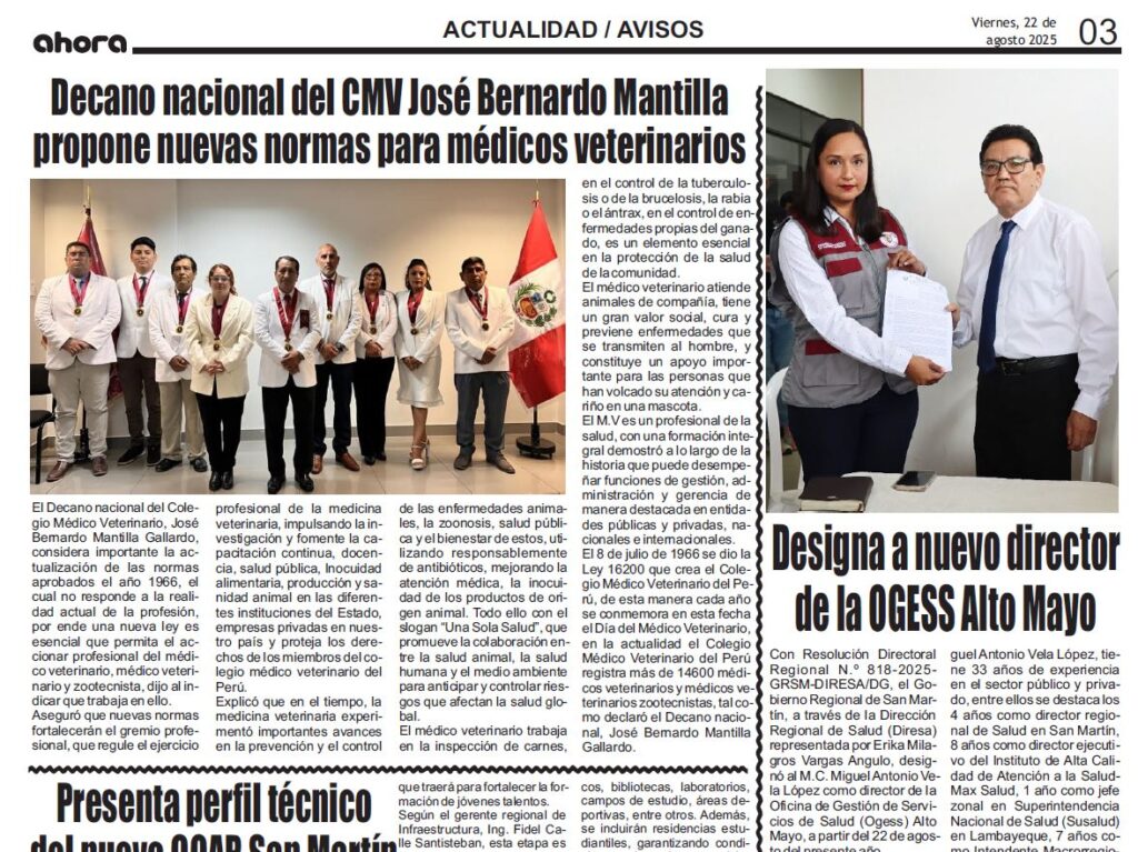 DECANO DEL CMVP PROPONE NUEVAS NORMAS PARA LOS MÉDICOS VETERINARIOS