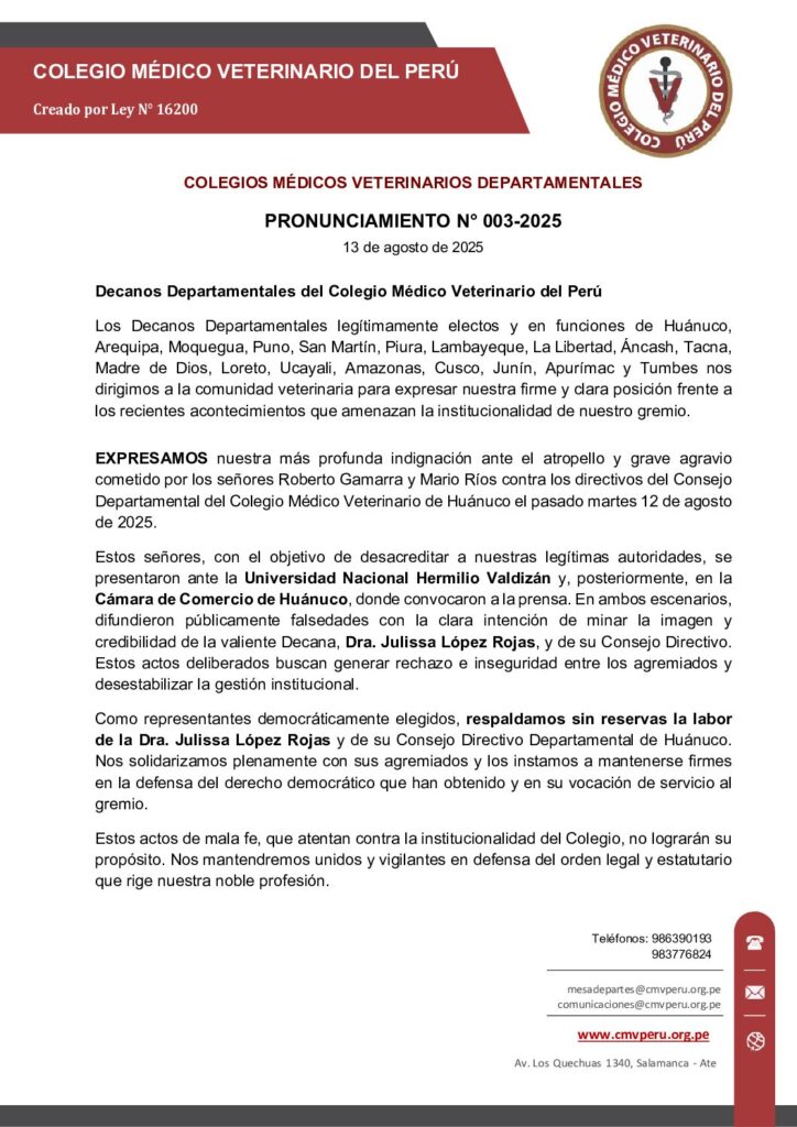 PRONUNCIAMIENTO N° 03-2025 : PRONUNCIAMIENTO DE DECANOS